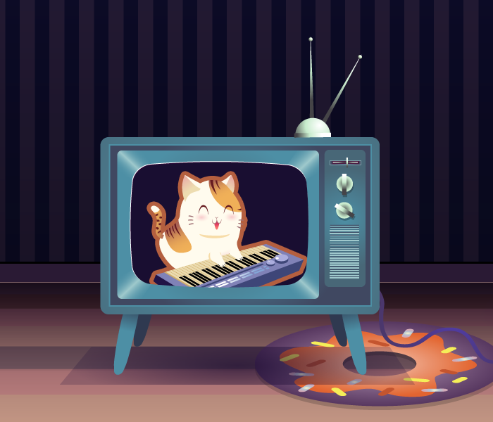 Reference to Keyboard cat meme.